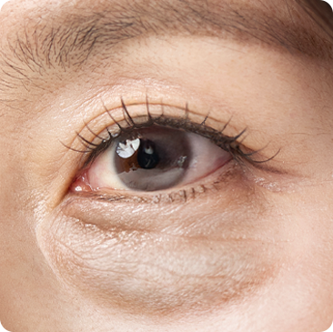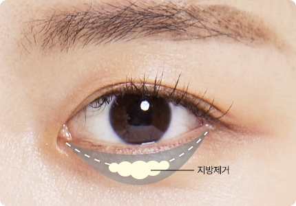 눈 밑 주름은 과하지 않지만 지방으로 인해 불룩 튀어나오면서