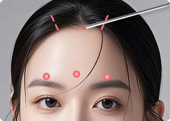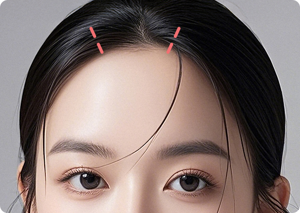 헤어라인 두피 안쪽 부위에 2곳 1.5~2cm 정도 최소 절개합니다. 01